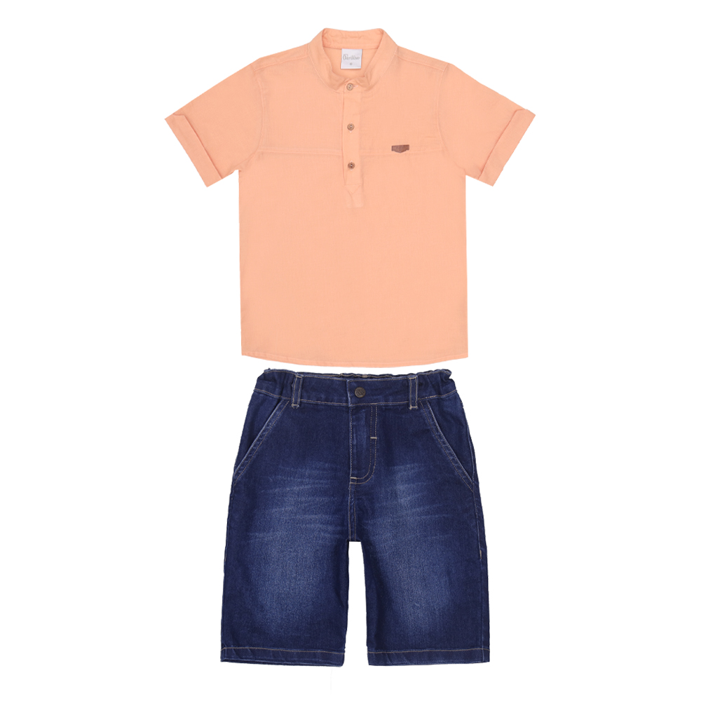 Conjunto de Camisa Bata Manga Curta e Short Jeans Menino Paraíso
