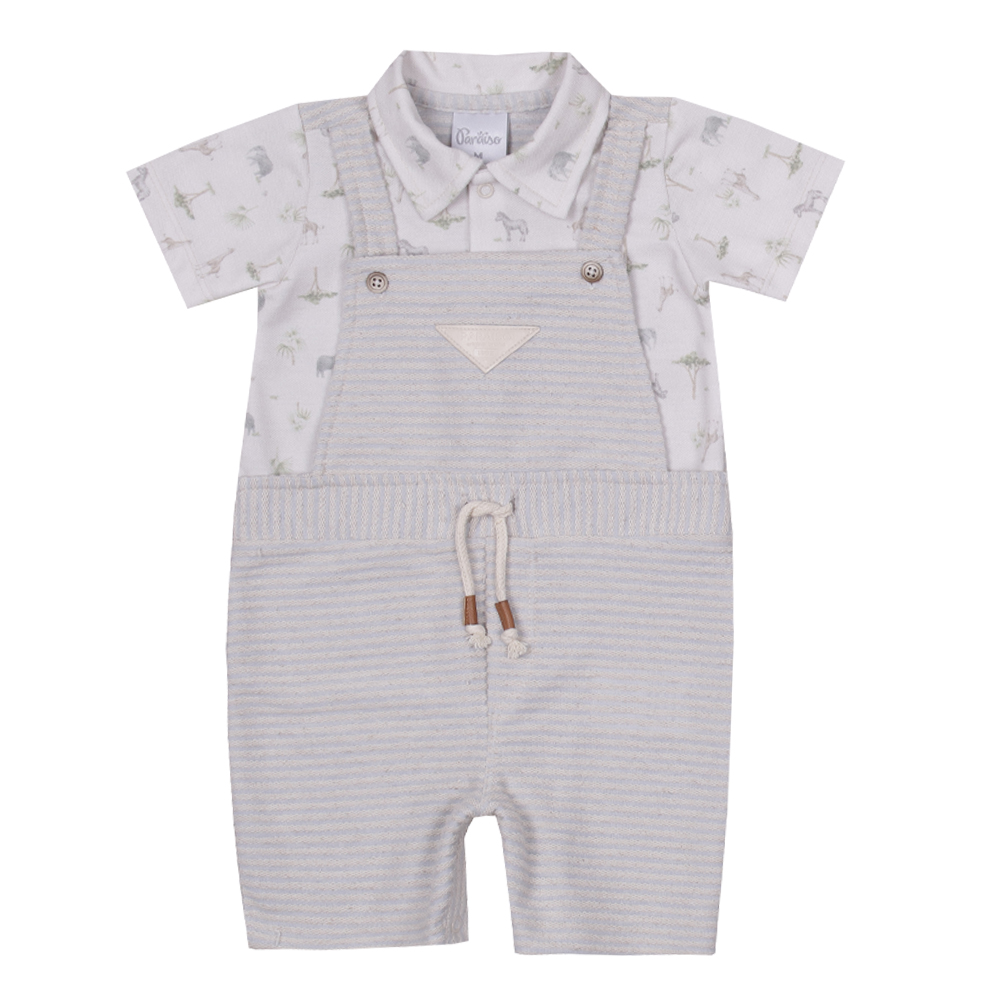 Conjunto Macacão Meia Manga Polo Jardineira Paraíso 16434