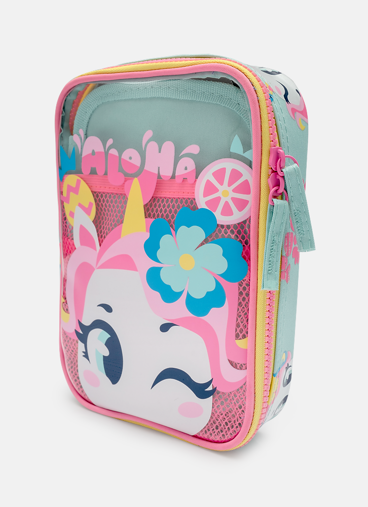 • O estojo grande com cores verde água é ideal para organizar diversos itens, além de possuir um espaço interno ótimo. Coleção 2025 • Possui aba interna com 24 elásticos para organização de lápis, canetas, etc. • Tamanho: Único - Grande • Medidas: 22 cm x 14,5 cm x 5 cm (LxAxP) • Cor: Verde água • Indicado para: Crianças / adolescentes / adultos • Ocasião: Escolar / trabalho • Material externo: Poliéster (nylon) • Material Interno: Poliéster • Fechamento: Com zíper • Capacidade: 1 litro • Compartimentos: 1 compartimento principal. Parte interna com 2 bolsos em tela e 24 elásticos para armazenamento de lápis. • Limpeza e conservação: Para limpeza, utilize apenas pano umedecido com água morna e sabão neutro; nunca utilize produtos abrasivos, solventes ou quaisquer agentes químicos; evite contato com água do mar, areia e outros abrasivos; para secar utilize um pano seco e macio. • Resistente à água: Não Composição 90% POLIÉSTER 10% POLIURETANO