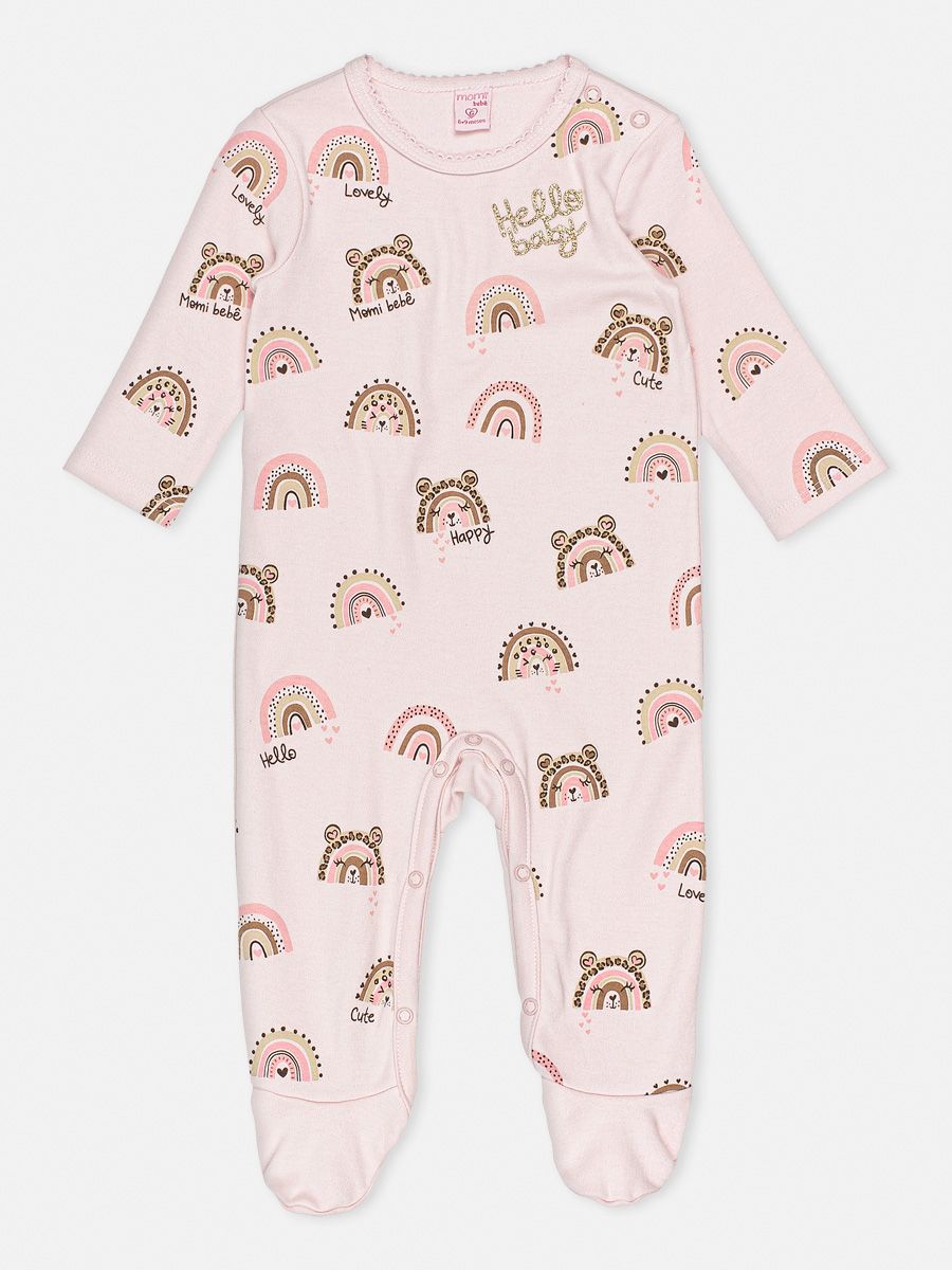 O macacão Momi foi desenvolvido em cotton com glitter na frente que deixa a peça com charme a mais. Aumentando a praticidade para as mamães o body ainda conta com botões de pressão no ombro e entrepernas. Composição: 96% algodão e 4% elastano. Ref.: C1680